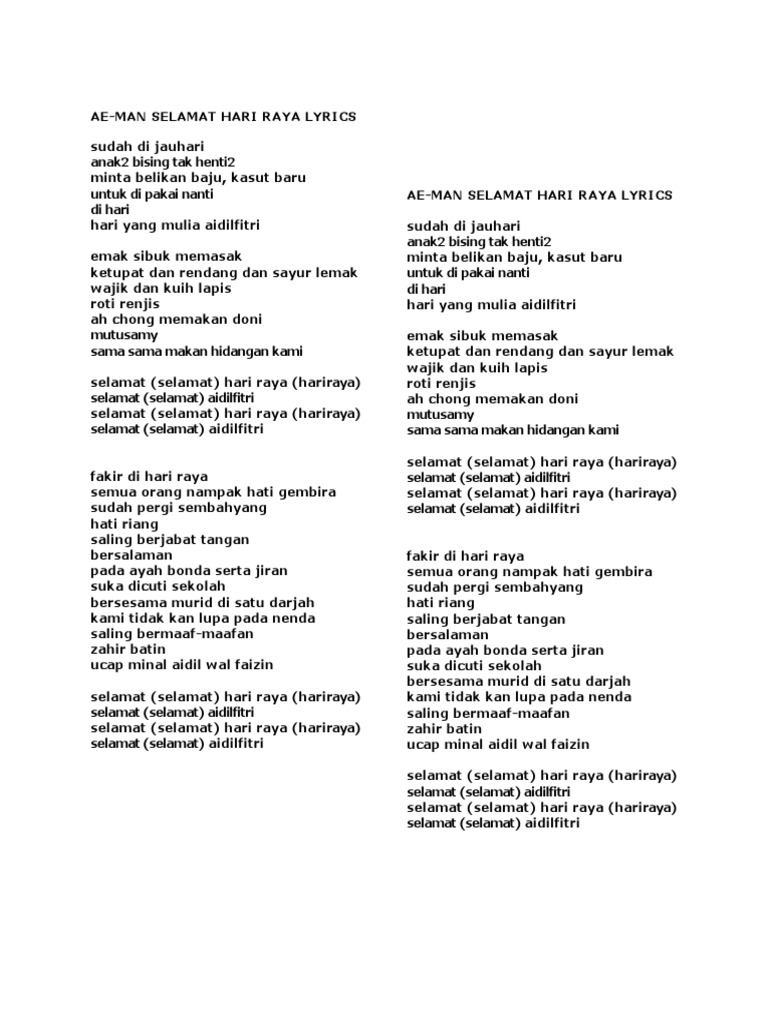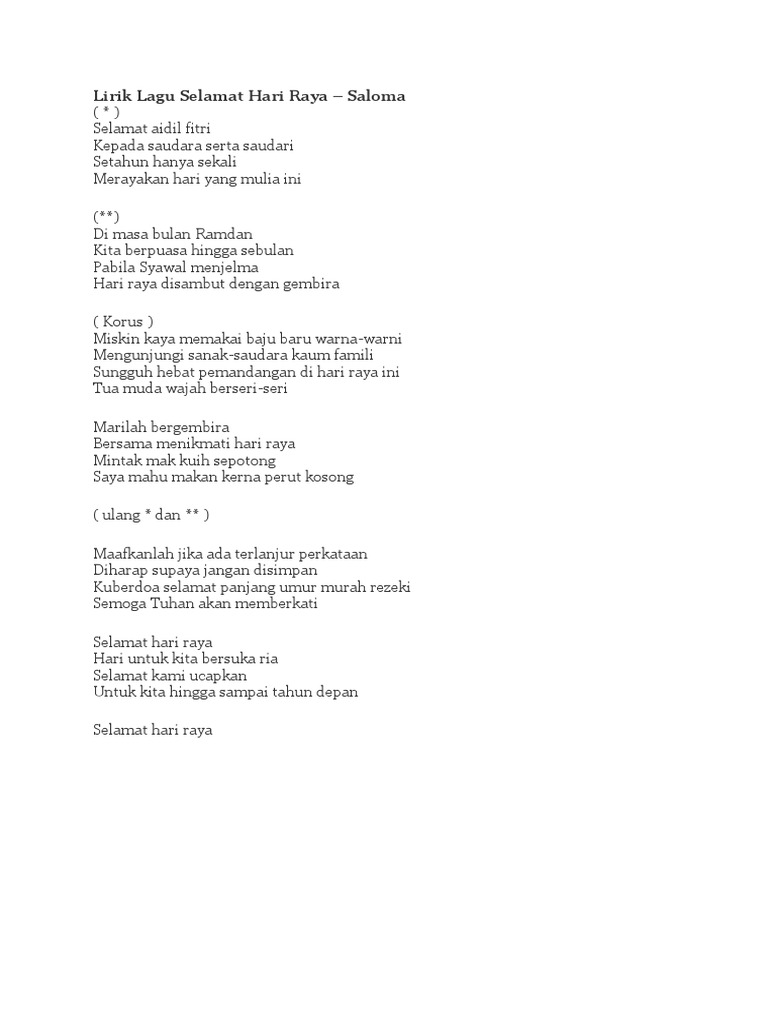 Lirik Lagu Selamat Hari Raya Pdf